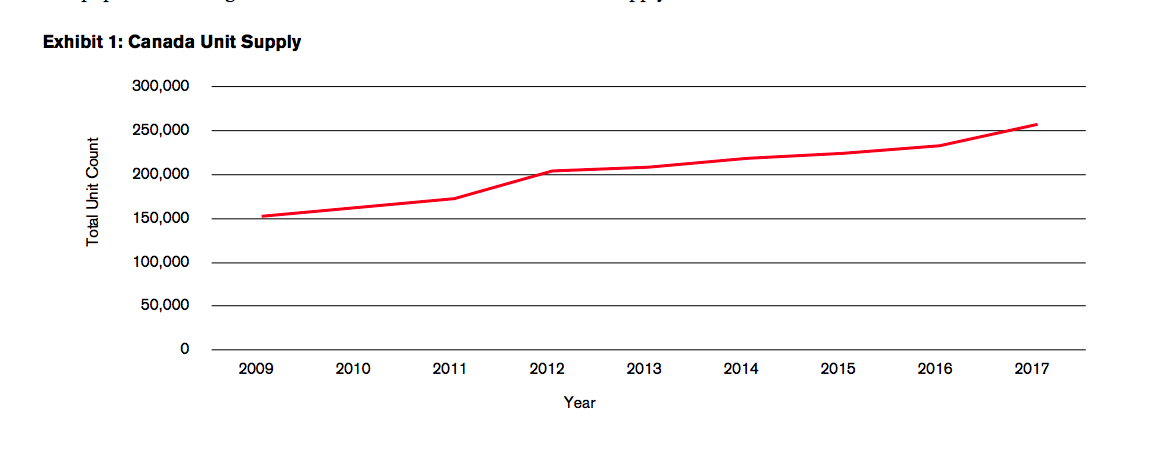 The growing senior population is putting a strain on the availability of current supply. More senior housing units are being developed nationally each year in an attempt to match this growth. However, the issue is that the rate of supply growth is not enough to match the senior population incline. In 2017, the total count for senior housing units in Canada was approximately 258,000, according to a total unit count by the CMHC’s Senior Housing Report (Exhibit 1). The year-over-year average percentage increase for supply development was approximately 6.9% between 2009 and 2017. However, between 2006 and 2016, the rate of increase for Canada’s senior population averaged 21.7% — more than double the rate of the supply increase.