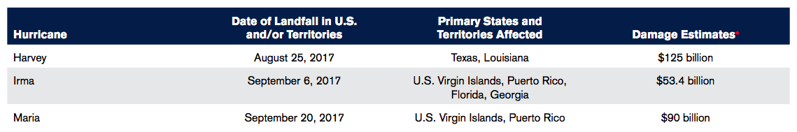 Around this time last year, the world watched as Hurricane Maria, the third hurricane to make landfall in the United States and its territories in less than a month, tore through the northeast Caribbean. In the weeks prior, in late August 2017, Hurricane Harvey made landfall in Texas and Louisiana, followed by Hurricane Irma’s landfall in Florida just a few days later. These storms cost thousands of lives (the bulk of which were lost in Puerto Rico, according to recent findings by George Washington University’s Milken Institute School of Public Health, which put the loss of life on the island at approximately 3,000 people); displaced tens of thousands of people from their homes; and caused billions of dollars in damages.