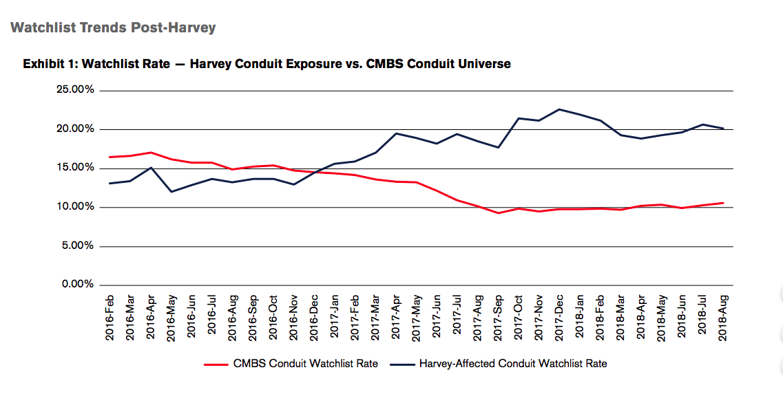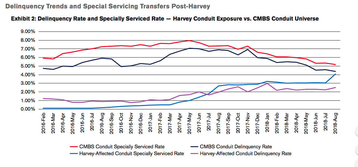 According to DBRS Viewpoint, 11 loans in Harvey’s path, with a cumulative balance of approximately $203.3 million, were new transfers to special servicing in the last year.