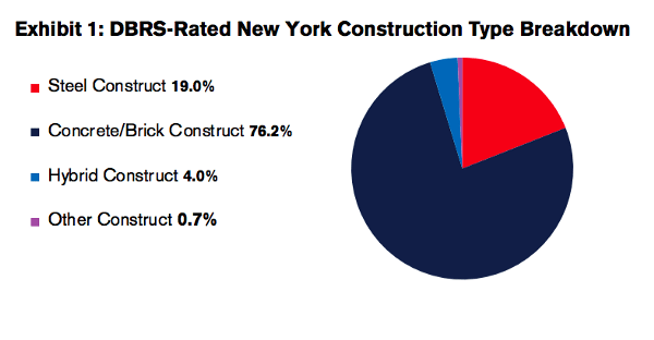There is little doubt that the U.S. market will be affected by steel tariffs that may also disrupt the steel and aluminum supply chain. New York City, which is already the most expensive city to build almost any property type (particularly office developments), will likely have issues meeting construction goals at a manageable cost. Based on New York loans rated by DBRS over all vintage origination years, 19.0% of construction types in the city are steel-majority buildings (including steel and glass buildings, steel and granite, etc.). While most of the buildings in New York City are concrete or brick-majority constructs (76.2%) based on buildings collected among DBRS-rated loans, these building types also require a significant amount of steel for rebar meshes and some structural interiors. Refer to Exhibit 1 for a complete breakdown of DBRS-rated New York City construction types. It should be noted that the wider New York City inventory may reflect somewhat different percentages.