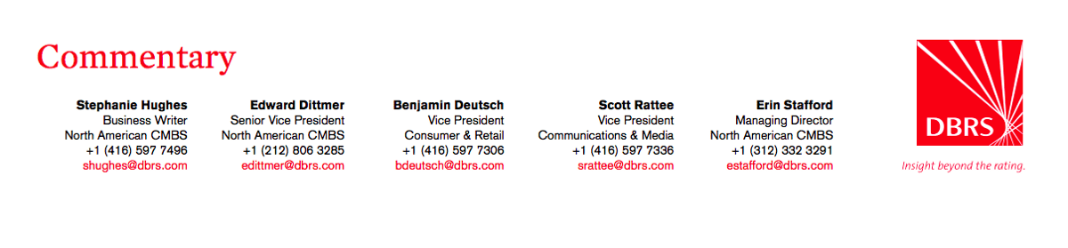 From a commercial real estate standpoint, it may be more difficult for big box locations in secondary and tertiary markets to backfill the vacancies that Lowe’s leaves behind. Although California’s economy has been relatively strong for the past several years, the stores Lowe’s is closing have underperformed. However, the stores are located in Orange County and the Bay Area, real estate markets that DBRS expects to remain stable, which may allow the spaces to be backfilled or redeveloped. The Company is closing stores in Manhattan and suburban Dallas, markets that DBRS considers to have better prospects. Other areas such as Flint, Michigan; Mankato, Minnesota; and Shippensburg, Pennsylvania, may struggle to find new tenants for their spaces.