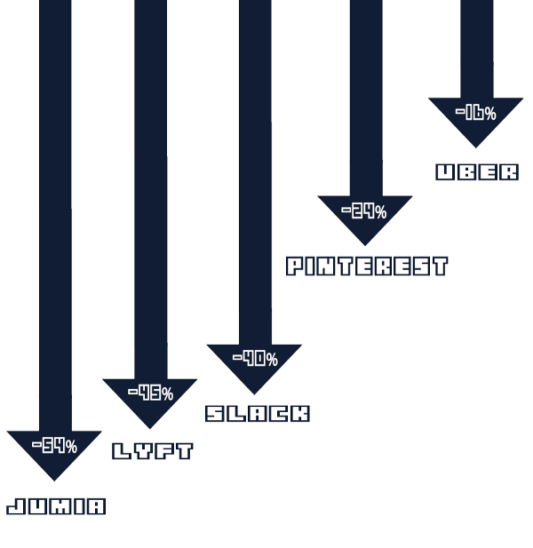 Anyone who was paying attention to the unicorns that went off to the races last year could name off the notable failures: Jumia (which dropped 54 per cent from launch to the year’s end), Lyft (-45 per cent), Slack (-40 per cent), Pinterest (-24 per cent), and Uber (-16 per cent). With the exception of Jumia and Pinterest which both saw a pop after going public before fizzling out), most of these examples have face-planted as soon as they came to market.